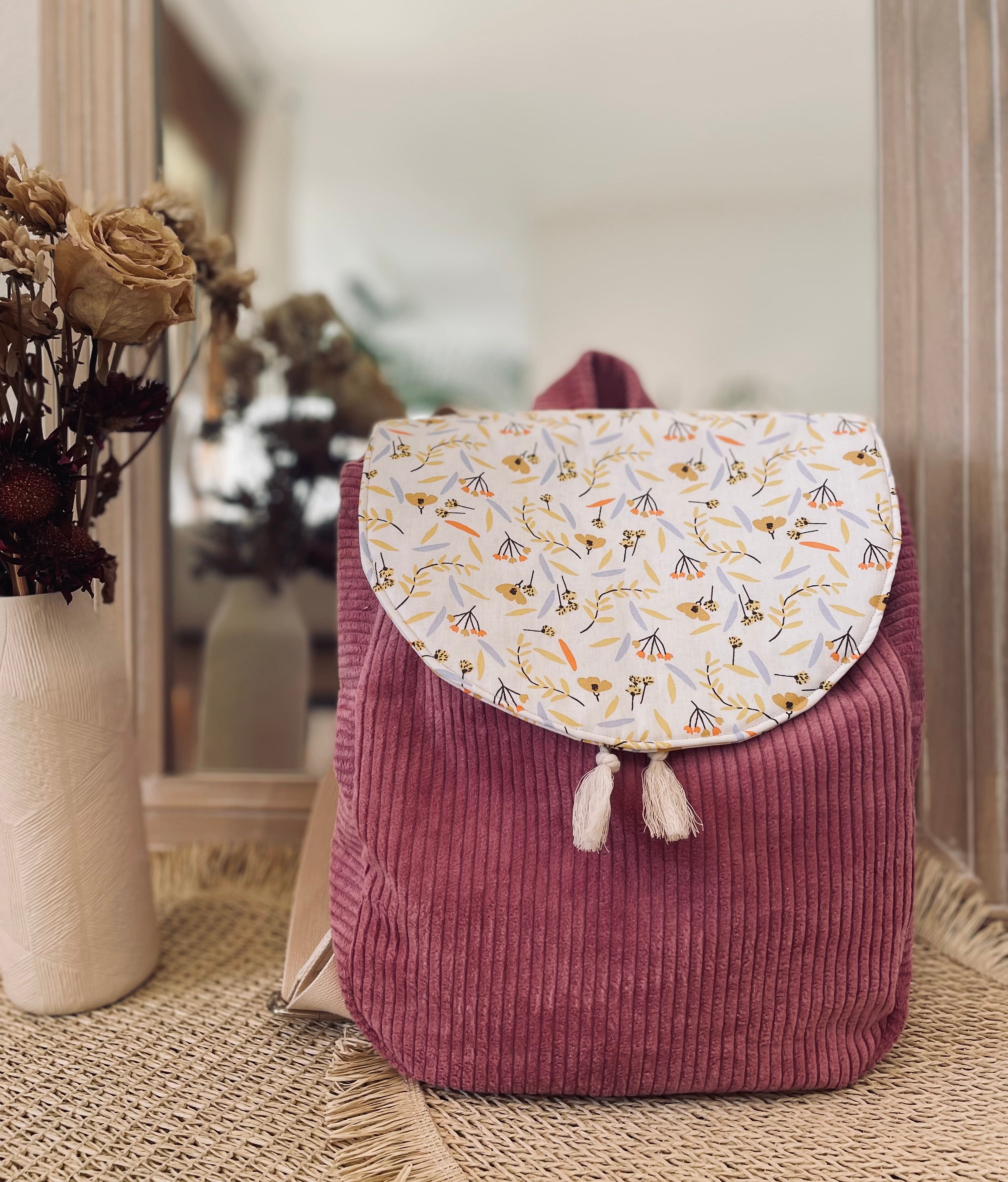Sac à dos enfant velours côtelé Bordeaux-Coeurs