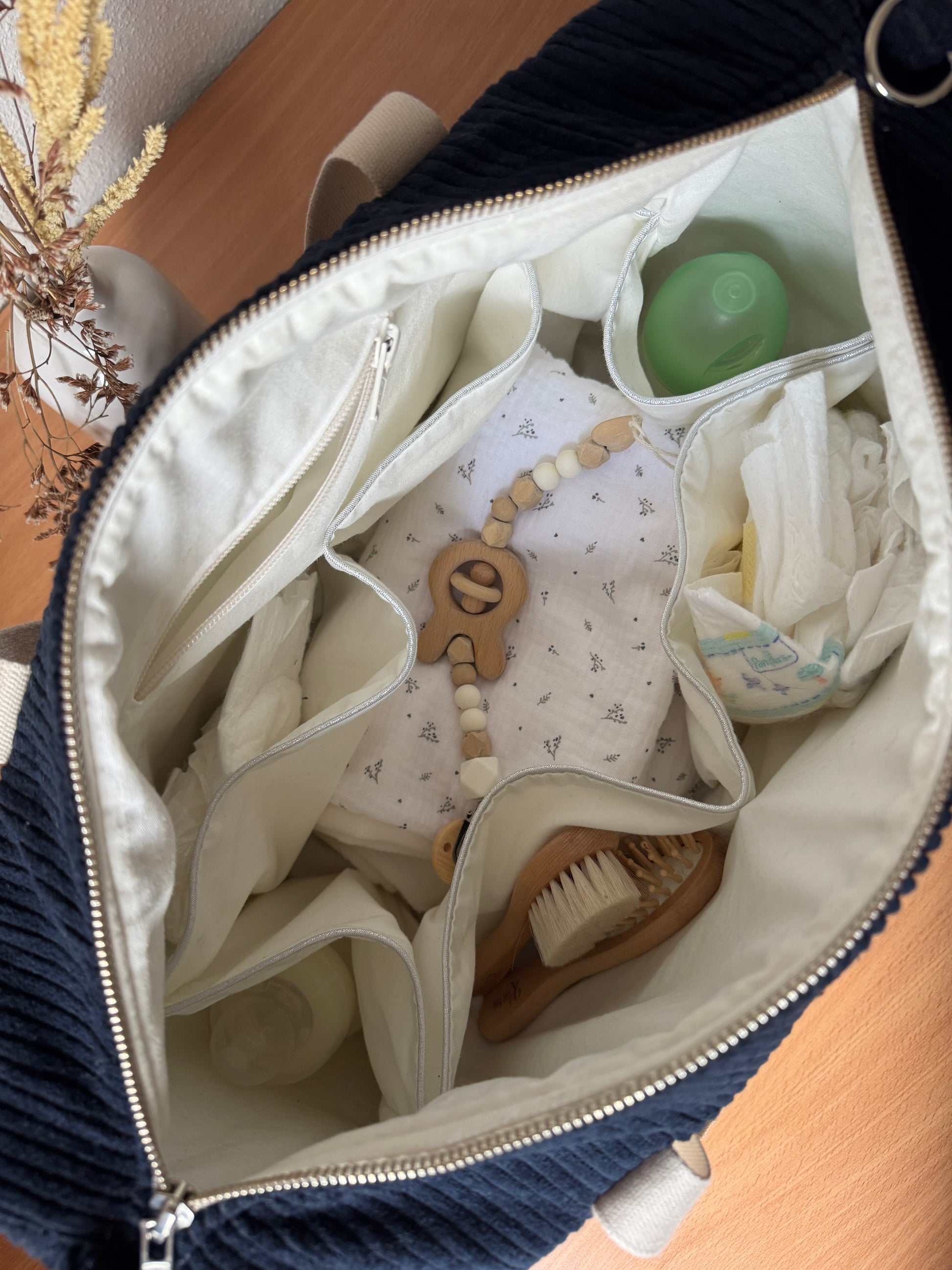 Sac à langer velours côtelé Bleu marine